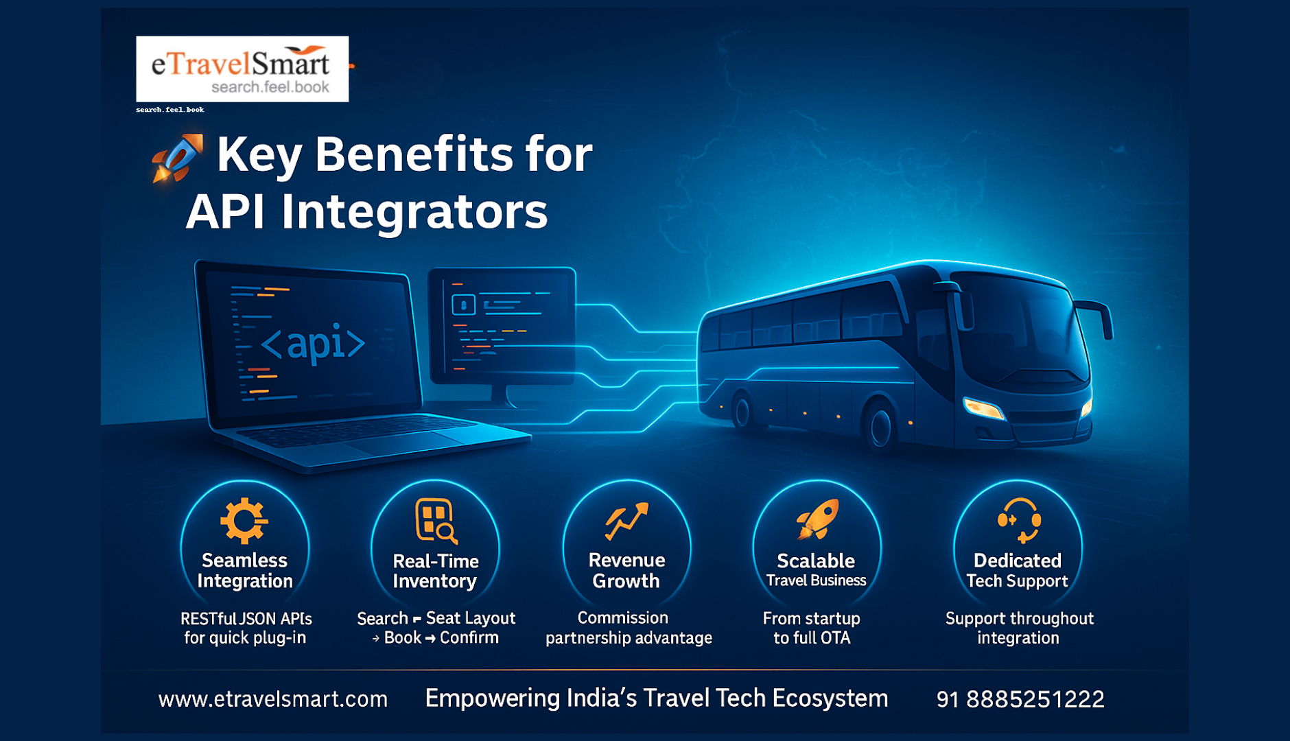 Start your own bus booking portal with eTravelSmart, India’s leading white-label SaaS travel platform. Connect instantly to 3,000+ operators and 80,000+ routes with built-in APIs, smart filters, dashboards, and payment gateways all under your own brand. The online bus ticketing market in India is booming, and eTravelSmart lets you ride the wave without backend complexity. Focus on marketing, branding, and customer acquisition while we handle technology, integrations, and inventory. Join hundreds of travel entrepreneurs who’ve launched their own portals using eTravelSmart’s proven B2B system.